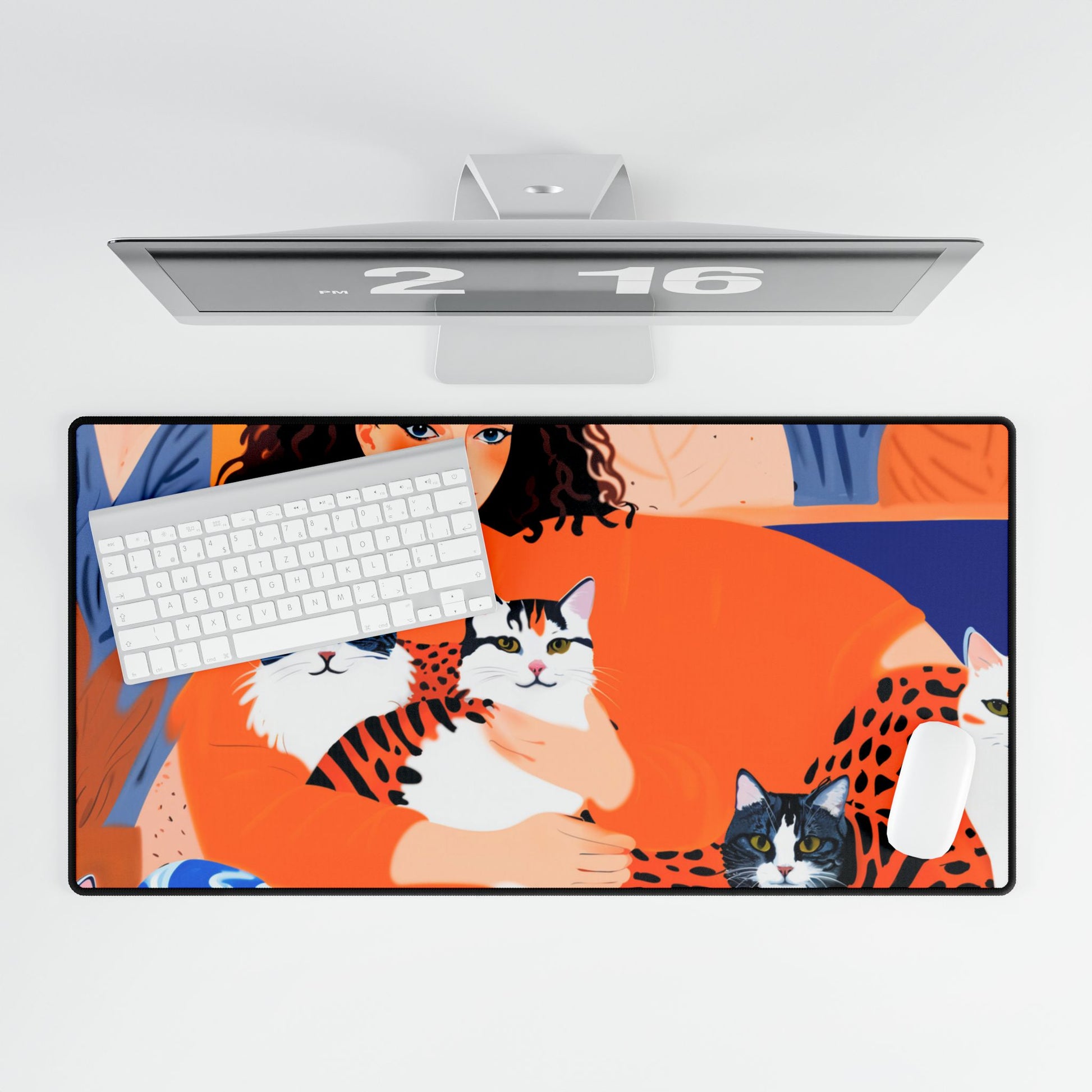 Chic Cat-themed Desk Mat, Decorative Office Mat, Animal Lover Gift, Home Office Decor, Cat Lover's Desk Accessory
