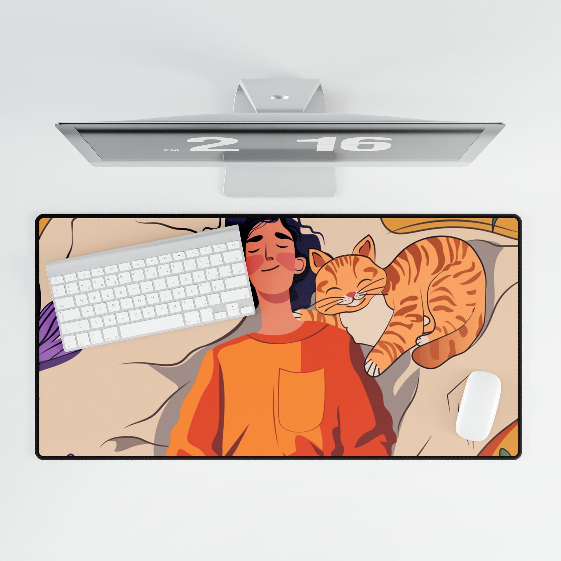 Cozy Cat-Themed Desk Mat, Cute Desk Accessories, Home Office Decor, Gift for Cat Lovers, Relaxing Workspace