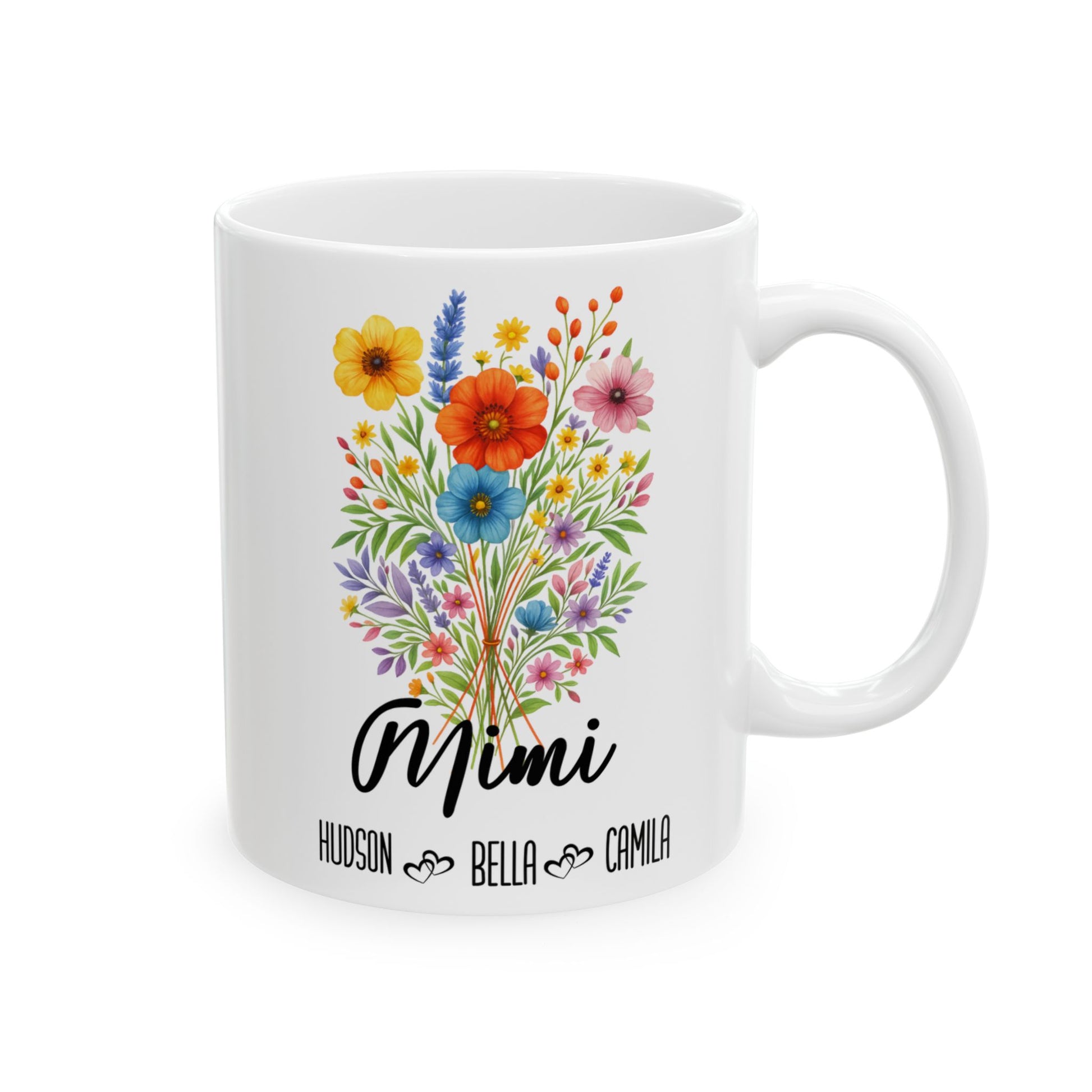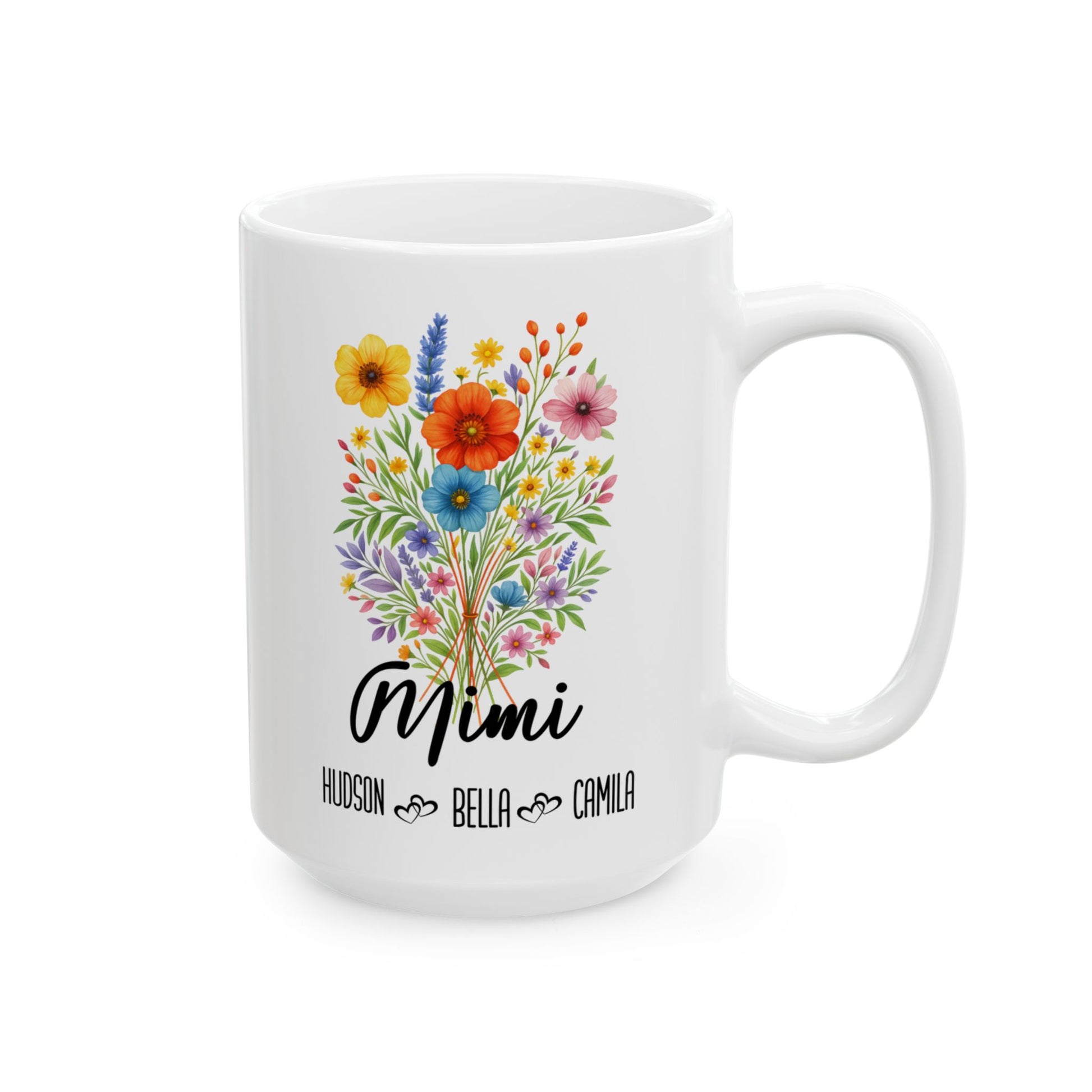 Delight your Mimi with this sweet and stylish coffee mug, available in 11 oz and 15 oz sizes. Whether it's for her birthday, Mother's Day, or just because, this personalized ceramic mug is a thoughtful gift she’ll use every day. Customize it with her name or a loving message to make it extra meaningful. Crafted for durability and everyday use, it’s both microwave and dishwasher safe. This beautiful mug is a daily reminder of the love her grandkids have for her. Perfect for morning coffee, evening tea, and everything in between, it’s a keepsake she’ll treasure.