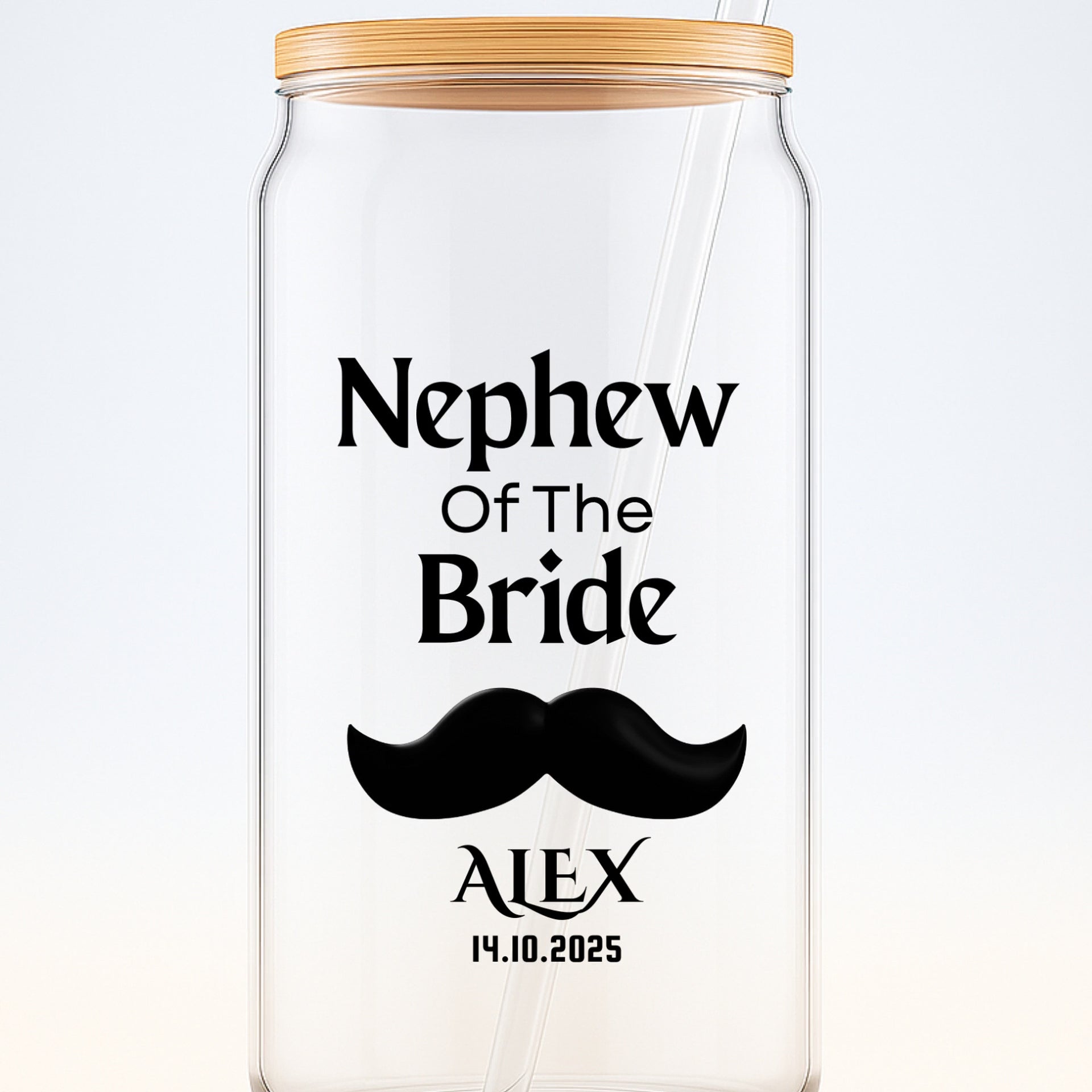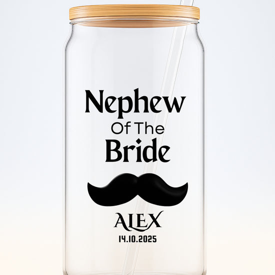 Make your nephew feel special on your big day with this personalized 16oz sipper glass — a fun and meaningful keepsake he’ll always remember. Whether he's part of the wedding party, the ring bearer, or simply a beloved family member, this custom sipper is a perfect thank-you gift. Add his name or the title “Nephew of the Bride” for a personal touch. Great for pre-wedding celebrations, rehearsal dinners, or as a treasured keepsake from the celebration.